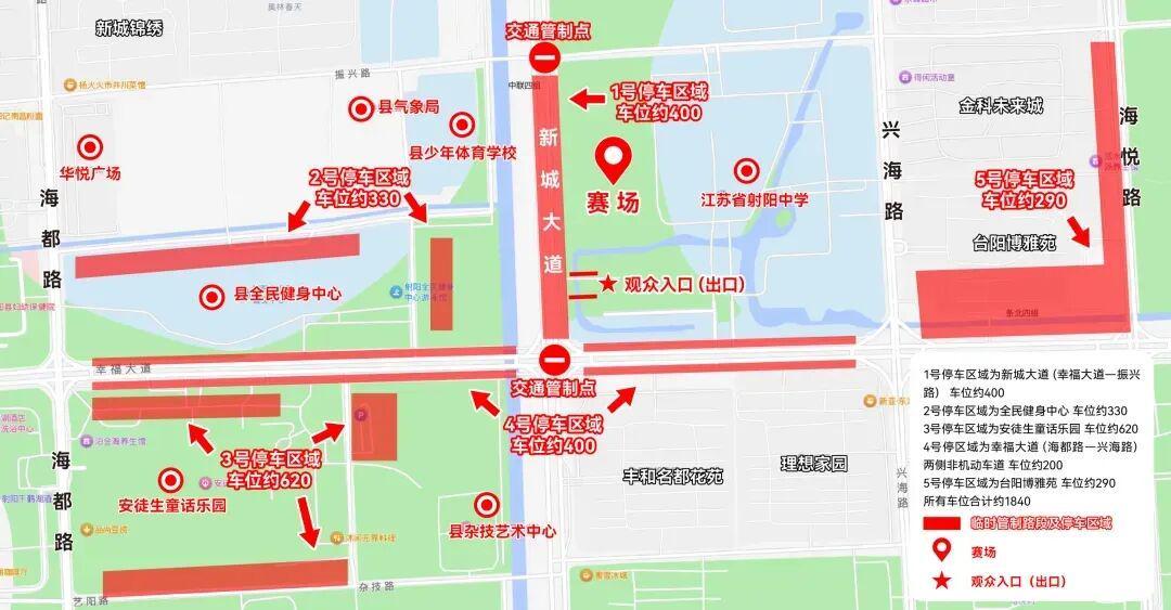活动期间,场馆周边道路设置5处停车区域,具体如下: