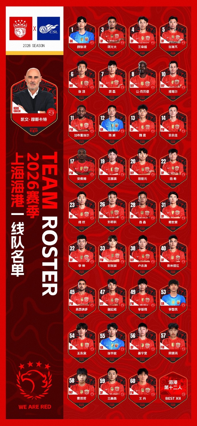 开云体育官网-海港新赛季名单:武磊7号、克劳德8号、蒯纪闻47号,无梅伦多