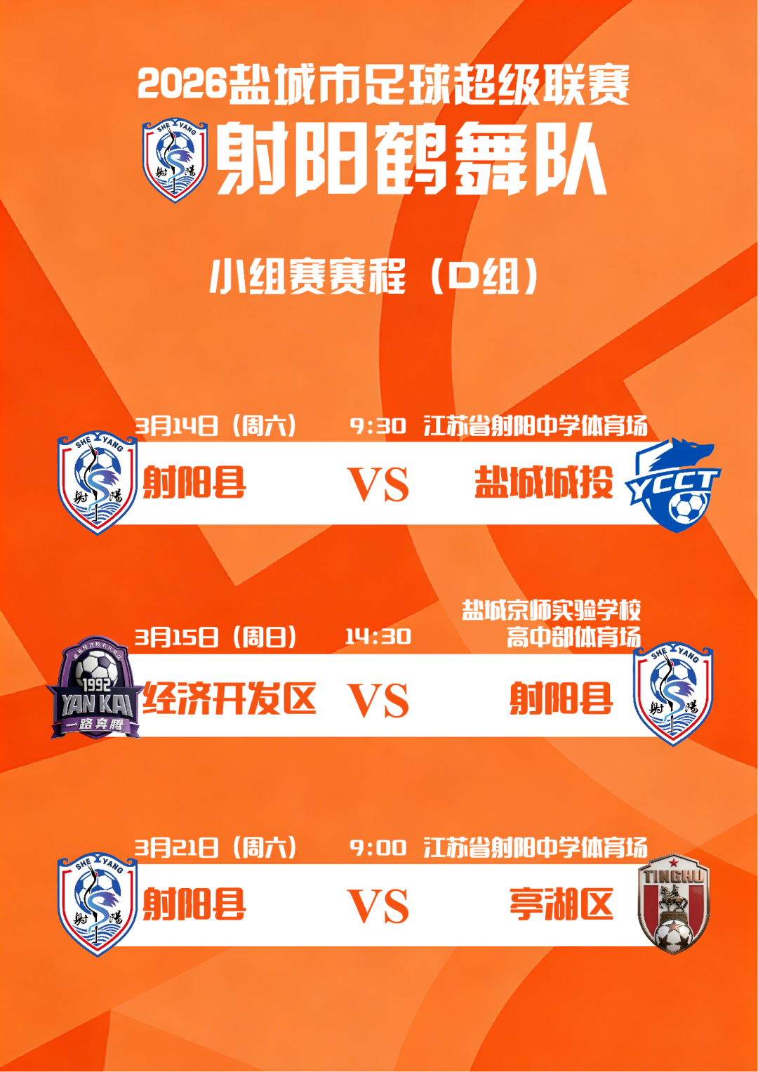 射阳主场不止有热血沸腾的精彩赛事,更有超好玩的鹤舞市集嘉年华与超值票根福利等你来!3月14日,相约射阳中学体育场,看球赛、逛市集、享优惠,一站式嗨玩到底!
